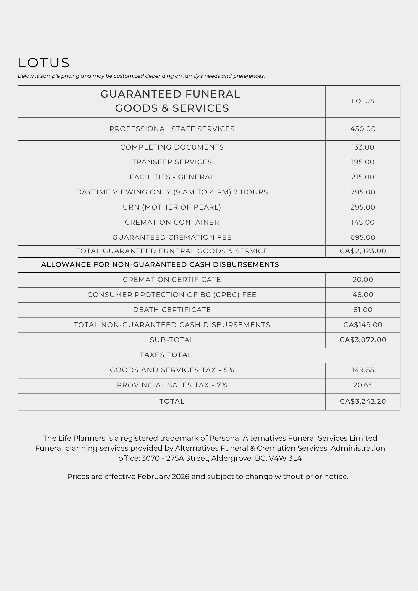 The Lotus package is for those of us who would like a simple cre_mation and solemn celebration of life for close family and friends. It will include a memorial service at the Alternatives Chapel with the urn.